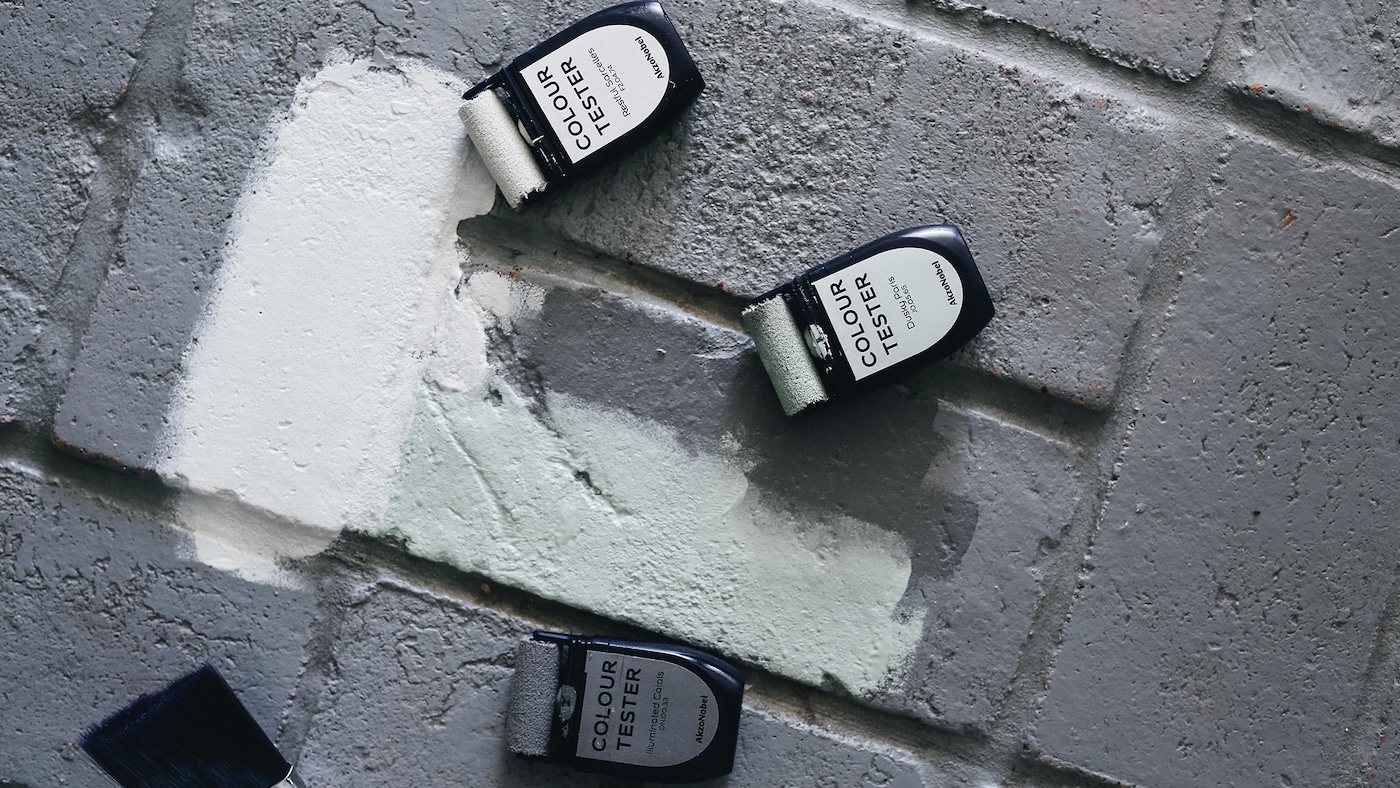 "Jeg havde ikke hørt om Colour Tester før og synes at de virker super nemme. Med Colour Testeren går det hurtigt og nemt, at prøvemale et lille stykke overflade. Det er altid lettere, at se det ønskede resultat når man maler nogle forskellige farver direkte på væggen, synes jeg, og det kan jeg gøre nemt nu med Colour Tester". Ved at rulle tre forskellige farver af Colour Testers på væggen, har hun nemt fundet frem til den ønskede farve – helt uden at skulle vaske pensler.