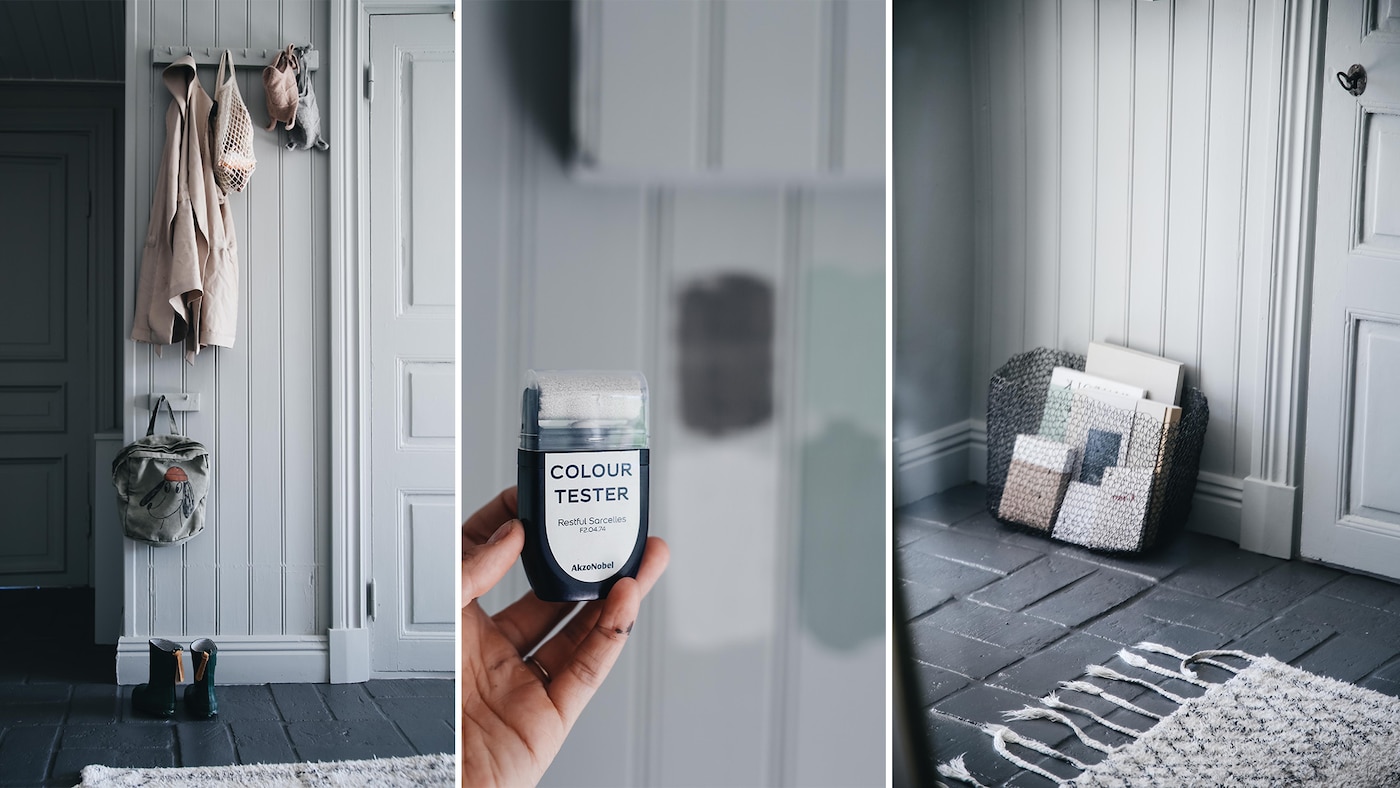 Annas entré er ret mørk og for at se hvad der fungerer bedst sammen med lyset, var Colour Tester en nem og enkel måde at finde ud af det på. Valget faldt til sidst på farven 'Dusky Paris' på vægge og træværk, mens gulvet fik en opfriskning med farven 'Illuminated Calais'.