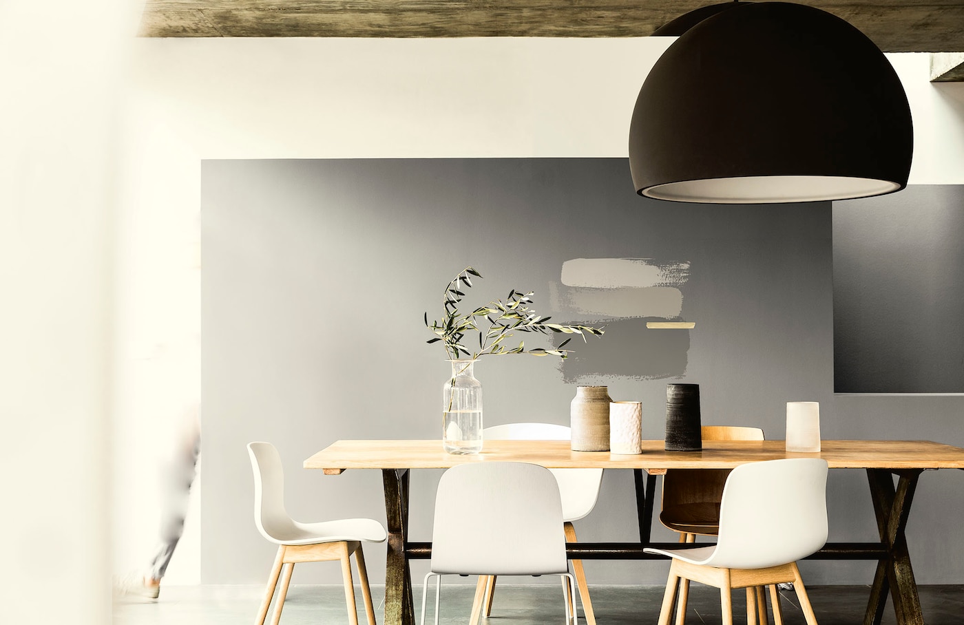 Med grå farver skaber du en rolig og behagelig atmosfære. I vores sortiment er der alt fra lyse, milde nuancer til mørkere farvetoner som tilfører kompleksitet og attitude. For at finde den farve som passer bedst til dig, er det vigtigt at du udgår fra de betingelser der allerede findes i rummet, tænker over helheden og hvilken stemning du vil skabe. Køligt nordlys fra store, generøse vinduespartier kan få en neutral farve til at føles kold. Et rum som vender mod syd byder på de helt modsatte betingelser: her forstærkes allerede varme toner, mens neutrale og svagt kolde farver bliver mere varme af lyset.