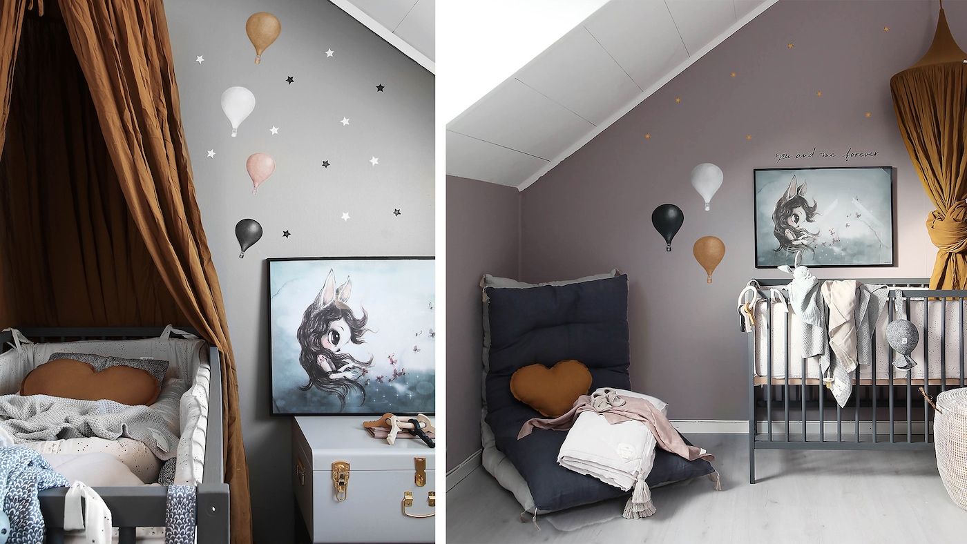 Hjemme hos bloggeren @stickstay.se som sælger håndtegnet og super cool wallstickers, er børneværelset, med de varme, rustrøde indretningsdetaljer, malet med farven Nordsjö grey fashion og Nordsjö Heart Wood – Årets farve 2018.