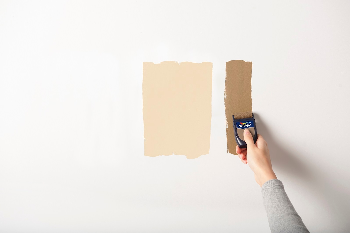 Når det drejer sig om at vælge farve så foreslår vi fra Nordsjö at du altid prøvemaler først. Enten køber du en Colour Tester eller en bøtte testmaling, for at se hvordan farven passer i præcis det rum du har planer om at male.