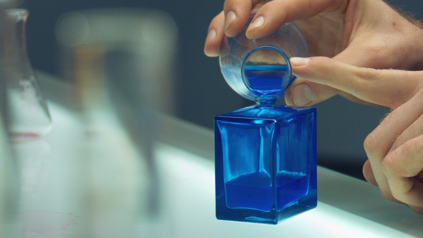 Vi ville afprøve, hvordan maling og farver påvirker lugtesansen. Denne video følger to parfumører, der komponerer dufte inspireret af vores fem farver. Væggen omkring dem roterer,