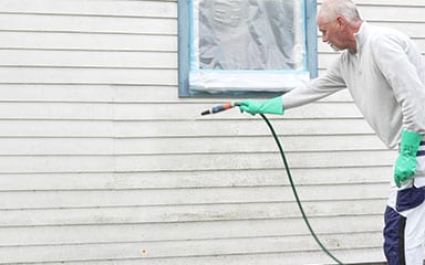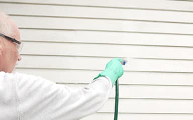 5. Spray dernæst Nordsjö Original Universal Grundrens på facaden, og lad det virke i 5-10 minutter.